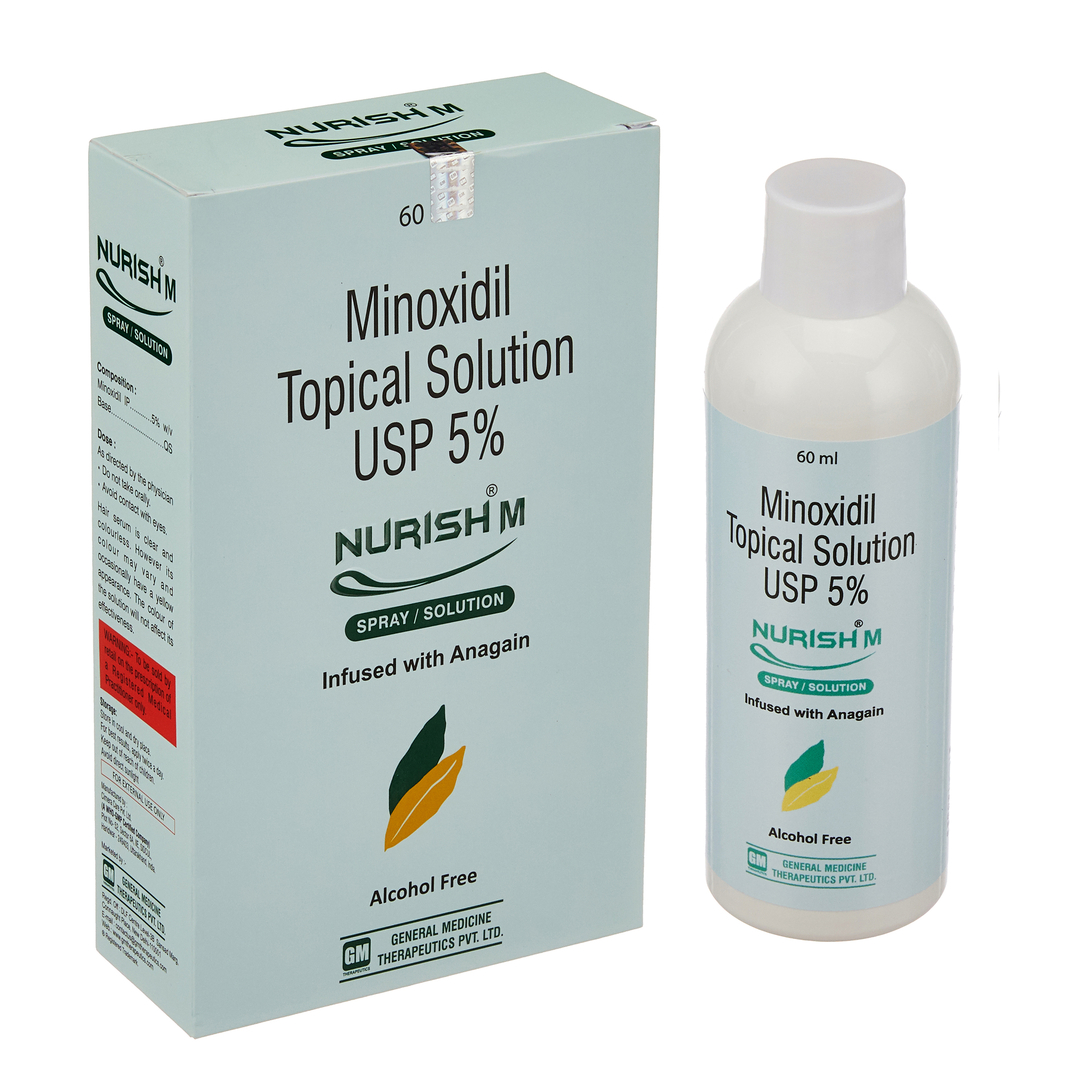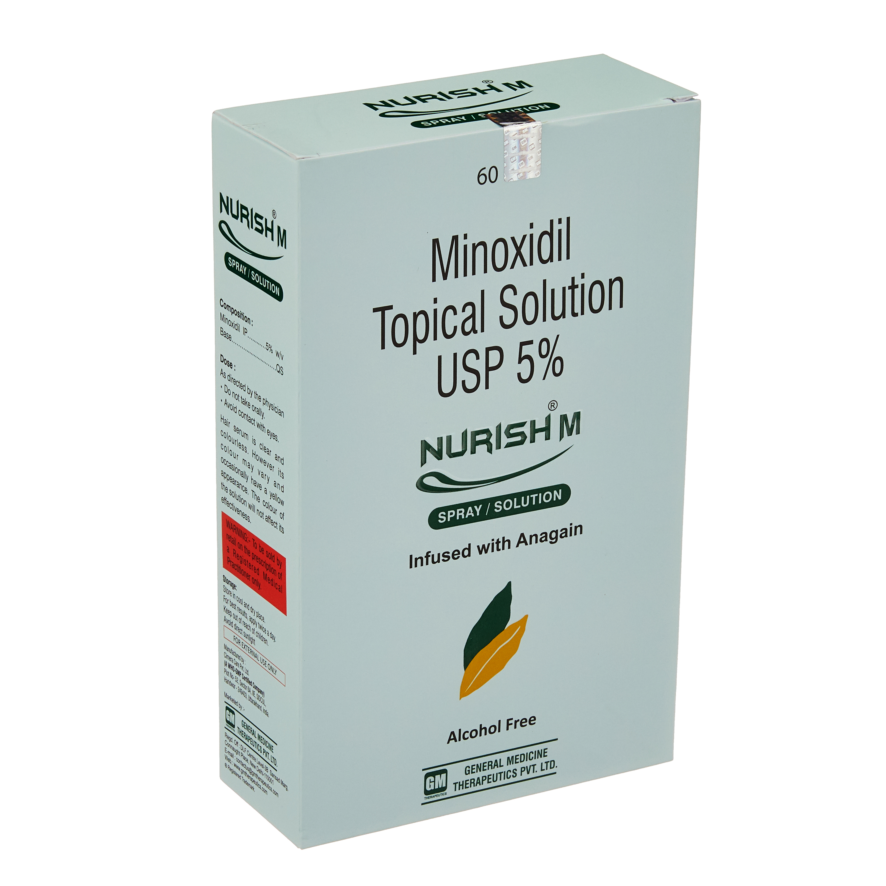 Minoxidil (5%): The active ingredient in Nurish M Topical Solution, minoxidil, is a vasodilator that works by increasing blood flow to the scalp, revitalizing hair follicles and promoting hair growth.
